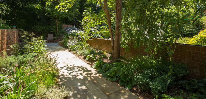 This garden represented more than the usual challenge, it was on many different levels, with average access, some retaining walls showing cracks and the bottom half of the garden had been left untended for some time and was completely overgrown with brambles. The apple tree was a splendid sculptural specimen, so we were keen to keep this.
