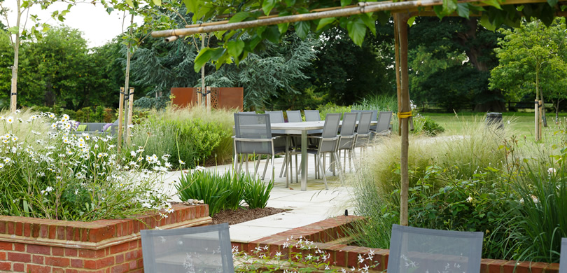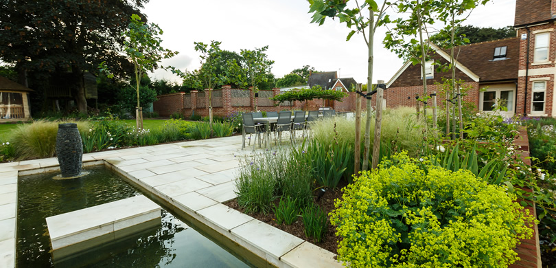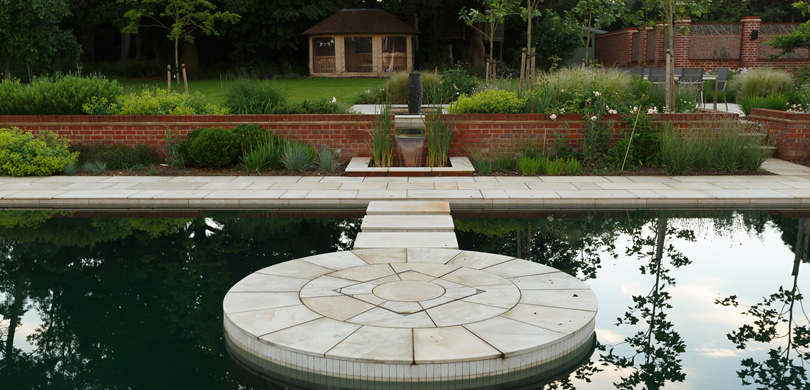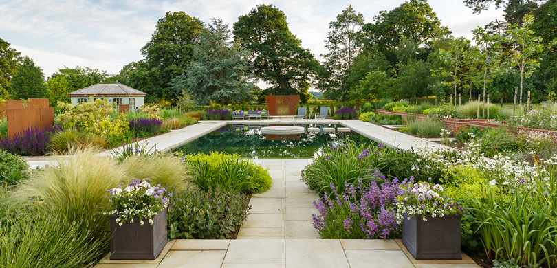 This significant BALI award-winning project was a complete start from scratch with the existing house being knocked down and a new property built in its place. The initial brief was for a traditional swimming pool around the side of the house along with entertainment space, but the designer convinced the clients a natural swimming pool as the main focal point of the garden would be a much more attractive option.