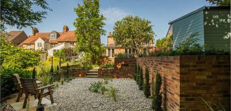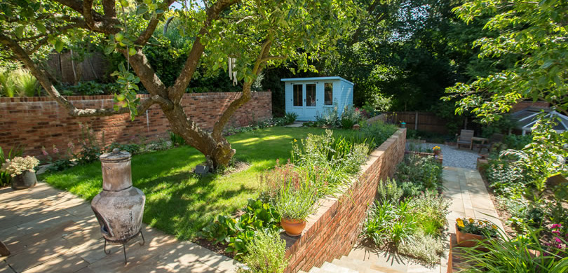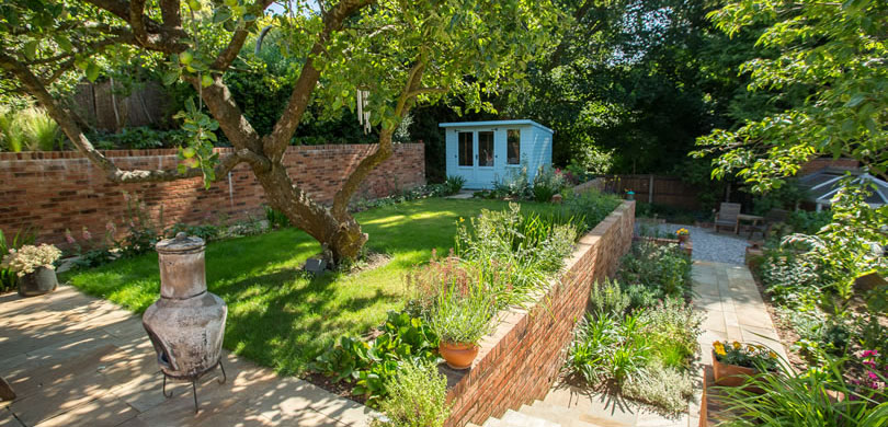 This garden represented more than the usual challenge, it was on many different levels, with average access, some retaining walls showing cracks and the bottom half of the garden had been left untended for some time and was completely overgrown with brambles. The apple tree was a splendid sculptural specimen, so we were keen to keep this.