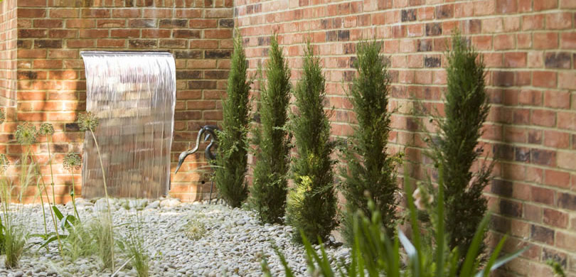 The garden was divided into four areas over five different levels, simplifying it from what had been done previously and enlarging some areas to make them more useable. The patio, lawn and shed all became the main part of the garden with the apple tree as a focal point which is lit at night. The garden then drops down to an herb garden at the side and then drops again to a gravel garden with further seating and a waterfall. The bottom level is a woodland walk as this is under the shade of a mature sycamore tree. A major retaining wall to the left of the garden was replaced and increased in height to create a fifth level, essentially a tall, raised bed making maintenance a little easier from the steep slope that had been there previously. All the garden is now accessible with slight changes of character as you move around the space to create more enjoyment.