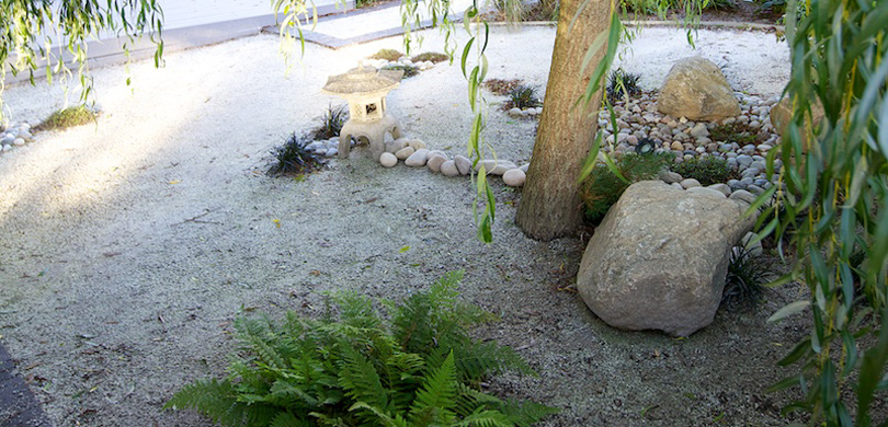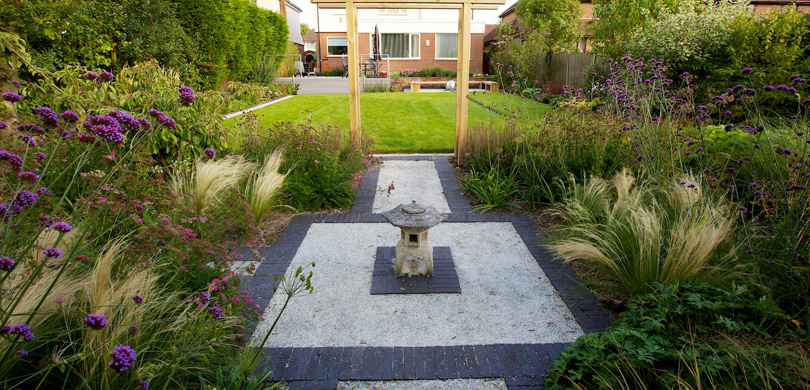 The existing garden was tired and lacked interest and style and the planting was overgrown and riddled with tree roots of Lime which were sprouting up all through the garden. The existing patio was too small and the sunniest spot in the garden had a shed in! The clients had spent some time living in Japan and wanted something with an oriental flavour to house their stone lanterns, they were also keen on contemporary design.