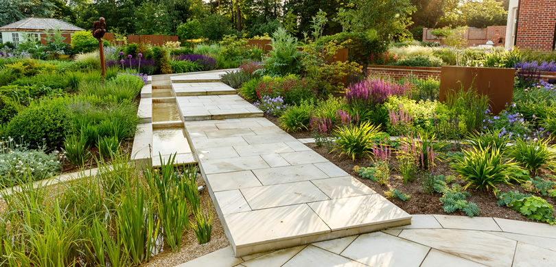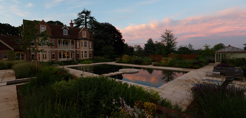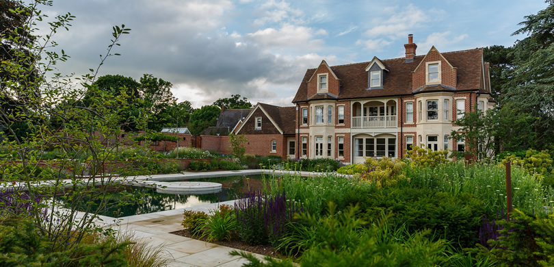This significant BALI award-winning project was a complete start from scratch with the existing house being knocked down and a new property built in its place. The initial brief was for a traditional swimming pool around the side of the house along with entertainment space, but the designer convinced the clients a natural swimming pool as the main focal point of the garden would be a much more attractive option.