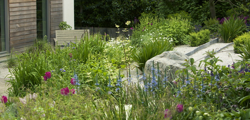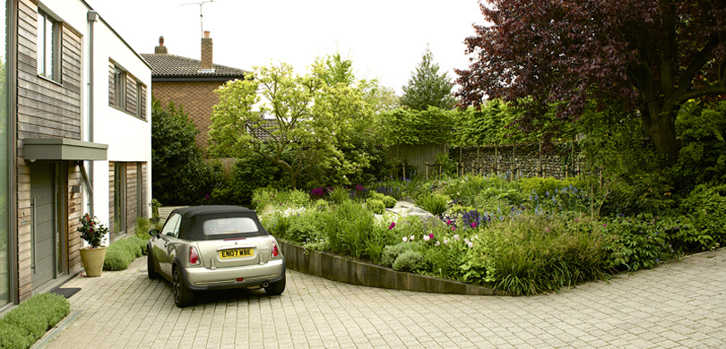 The back garden already had some hard landscaping but no planting to speak of and the front garden other then the driveway needed a total overhaul. The house was very contemporary but the client wanted the planting to be naturalistic to soften the geometric lines of the house.The Solution